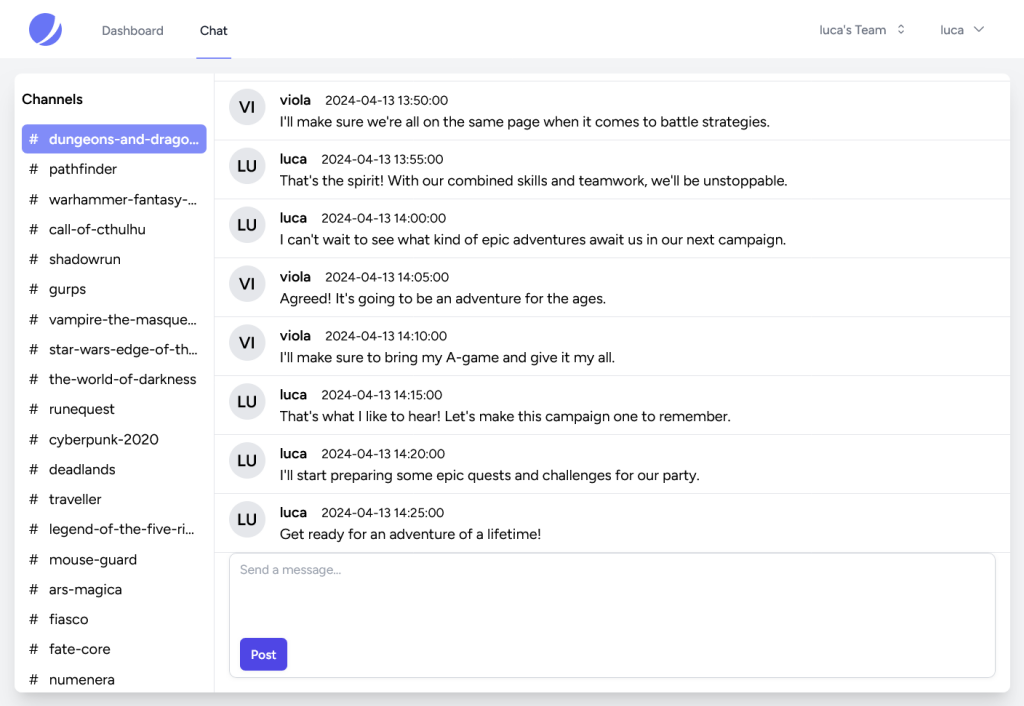 For the same reason I changed the messages seeder. I asked again ChatGPT for an hipotetical conversation between two persons about Dungeons & Dragons and used that as the list of messages for one of the channels created by the channels seeder.